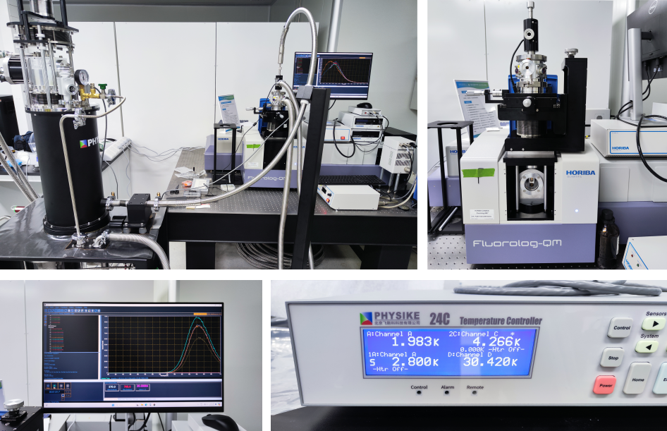 其中S-100-XYZ低溫恒溫器為連續(xù)流型低溫恒溫器,集成三維線性位移臺(tái)允許在低溫下對(duì)樣品進(jìn)行位置調(diào)節(jié),該恒溫器的尾部插入Fluorolog-QM光譜儀的樣品倉(cāng),合適的倉(cāng)蓋有效地阻止雜散光對(duì)實(shí)驗(yàn)的影響。