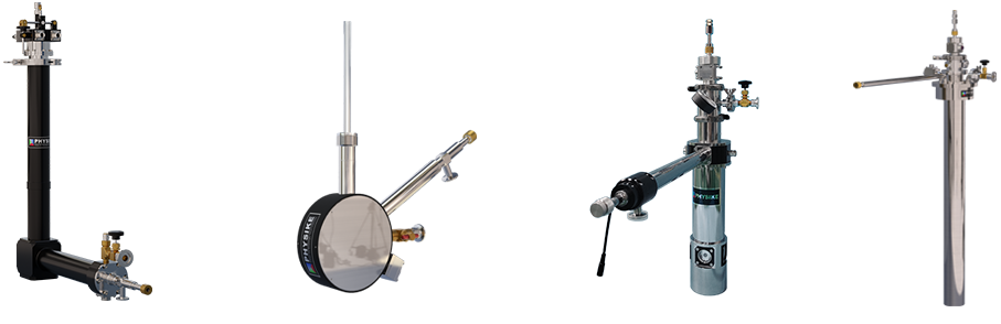 The Scryo-SV (abbreviated as SV) is a top loading continuous flow cryostat that utilizes a transfer piping with a needle valve to efficiently transfer liquid helium from the storage dewars into a vaporizer. The vaporized cold helium flows into the sample tube to cool the sample, which allows for adequate cooling of poorly thermally conductive samples (e.g., stainless steel, ceramics), irregularly shaped samples (e.g., DAC press), powdered samples, and liquids, with the option of a Static helium environment. Typical SV cryostat variable temperature range:<2K-325K, with optional 500K and 800K high temperature upper limits.