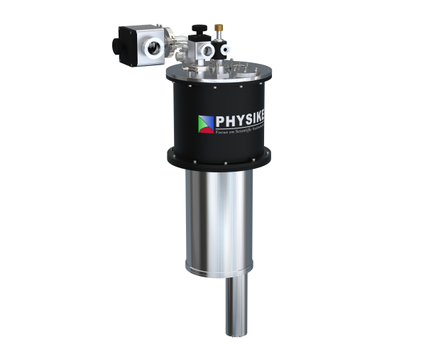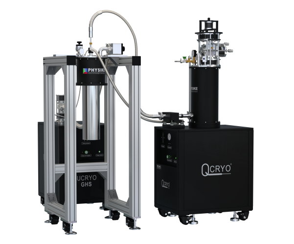 分體連續(xù)型亞K制冷機(jī)(型號(hào):Ucryo-100)的冷源來自氦循環(huán)低溫系統(tǒng)(Qcryo?),亞K恒溫器和4K冷頭是分開的(分體式設(shè)計(jì)),Qcryo?生產(chǎn)的低溫氦通過柔性超絕熱管線傳輸?shù)絹咾恒溫器內(nèi),用來冷凝另一路外置集成真空泵組的循環(huán)氦氣。這種分體式設(shè)計(jì)的突出特點(diǎn)是冷頭和氦氣壓縮機(jī)的震動(dòng)與亞K低溫恒溫器可以徹底隔離,特別適合應(yīng)用于對(duì)震動(dòng)極為敏感的實(shí)驗(yàn)。
