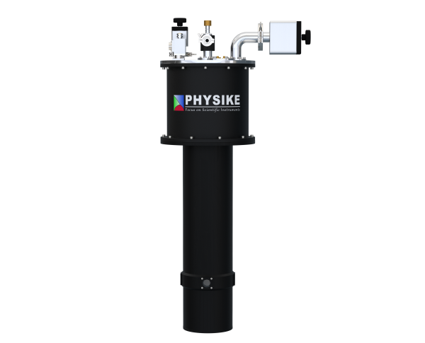 一體式亞K制冷機(jī)的4K冷頭集成在亞K制冷機(jī)內(nèi),從工作模式上可分為一體連續(xù)型亞K制冷機(jī)(型號(hào):Ucryo-200)和一體單發(fā)型亞K制冷機(jī)(型號(hào):Ucryo-300)兩類。其中一體連續(xù)型亞K制冷機(jī)外置循環(huán)氣路和真空泵組。而一體單發(fā)型亞K制冷機(jī)的頂部有氦氣儲(chǔ)罐,內(nèi)部集成He-4 pot,低溫吸附泵和密封管路,氦氣儲(chǔ)罐里面的氦氣通過4K冷頭冷凝后流進(jìn)He-4 pot,通過內(nèi)置低溫吸附泵將He-4 pot降至最低溫度。